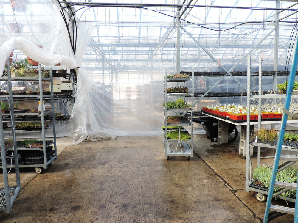 33-DSCN7898 Published March 15, 2015 at 1000 × 750 in This week in the Greenhouse (week of 02-15-15) ← Previous Next → Plastic walls help regulate temps between sections. Past that wall, we’re not yet heating and are just storing supplies for now.